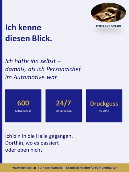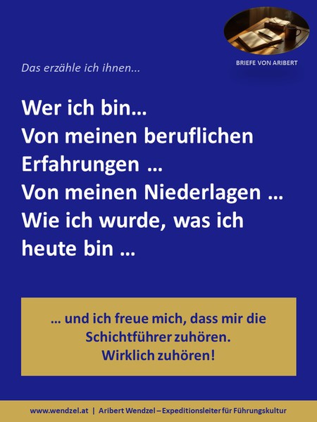 Brief #01: Ich betrete den Seminarraum. 12 Schichtführer blicken mich an. Die Jüngeren zweifelnd. Die
